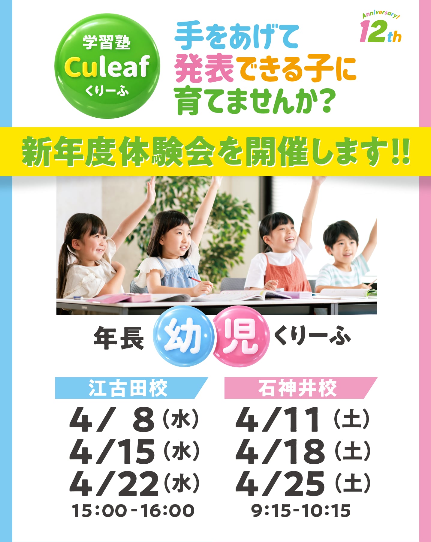 📍石神井校 4/11(土)・4/18(土)・4/25(土)