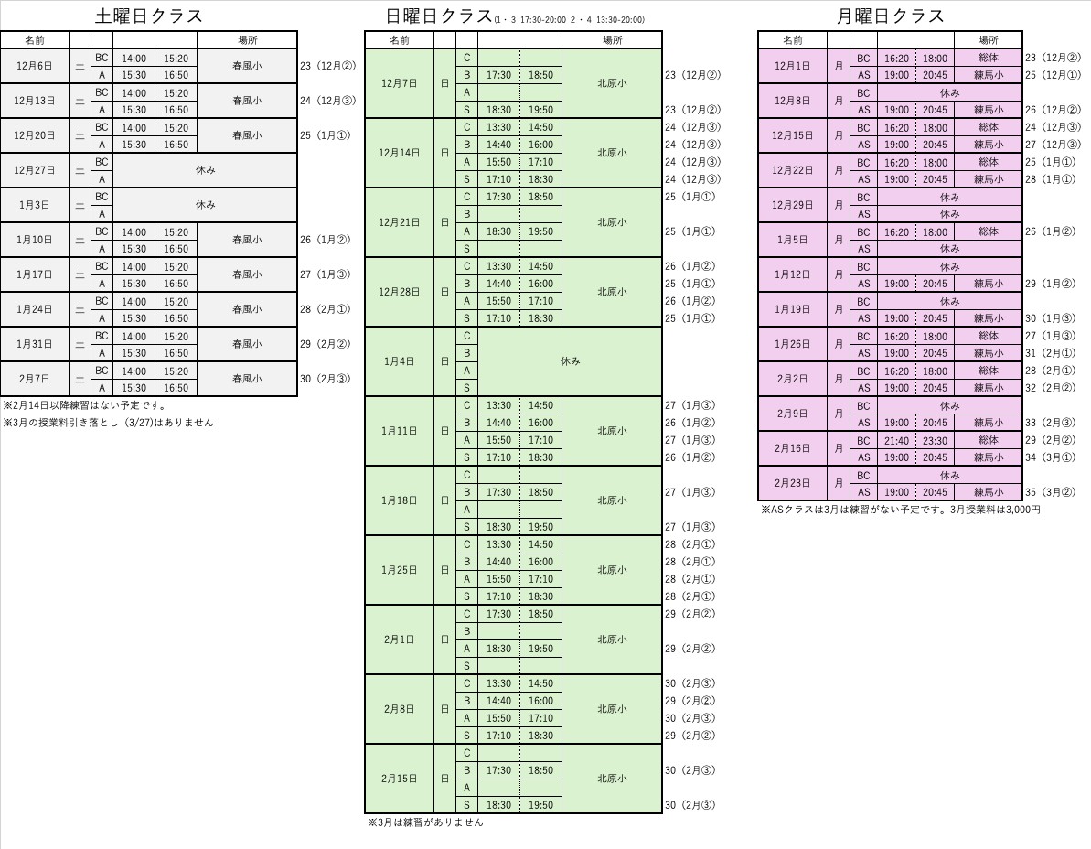 ※練習予定が変更なる場合がございます。参加日直前にもご確認をお願いいたします。